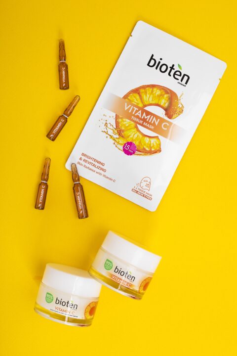 - την υφασμάτινη μάσκα bioten vitamin C, συνώνυμο της αναζωογόνησης και της ενυδάτωσης.